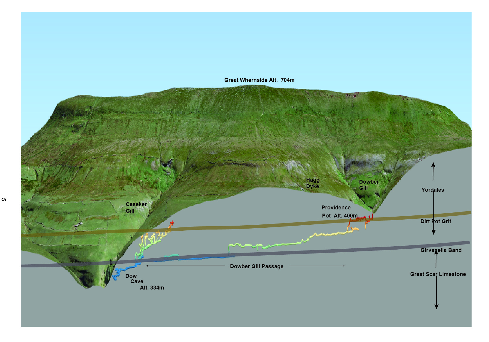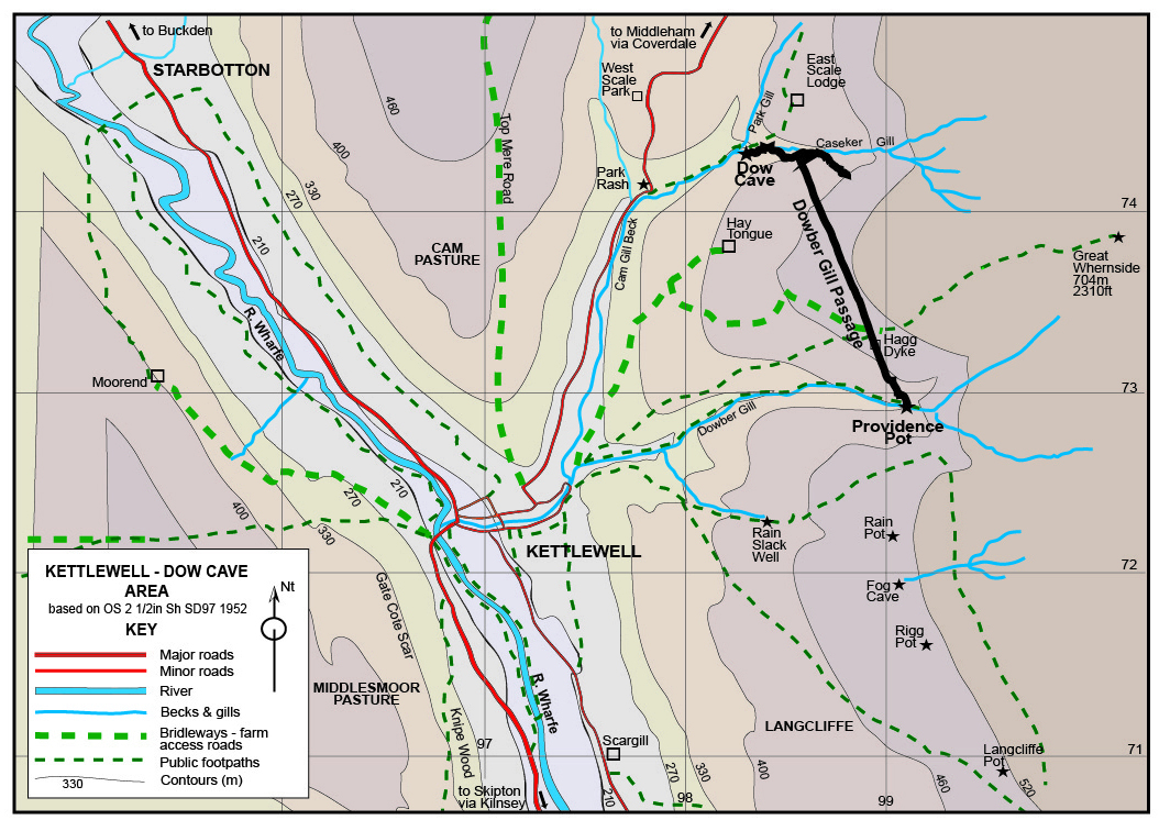Fig. 34 Dow Cave - Dowber Gill Passage - Providence Pot System overview. Based on an original idea from Patrick Warren |