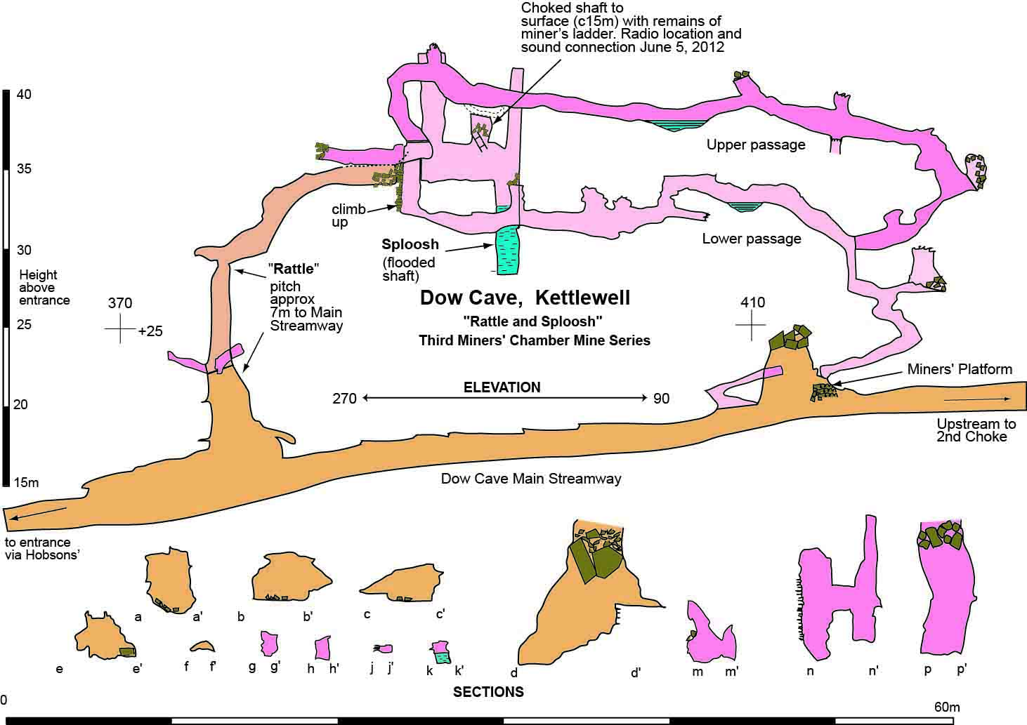 Fig. 23 Dow Cave: Rattle and Sploosh - Third Miners Chamber Mine Series - Elevation |