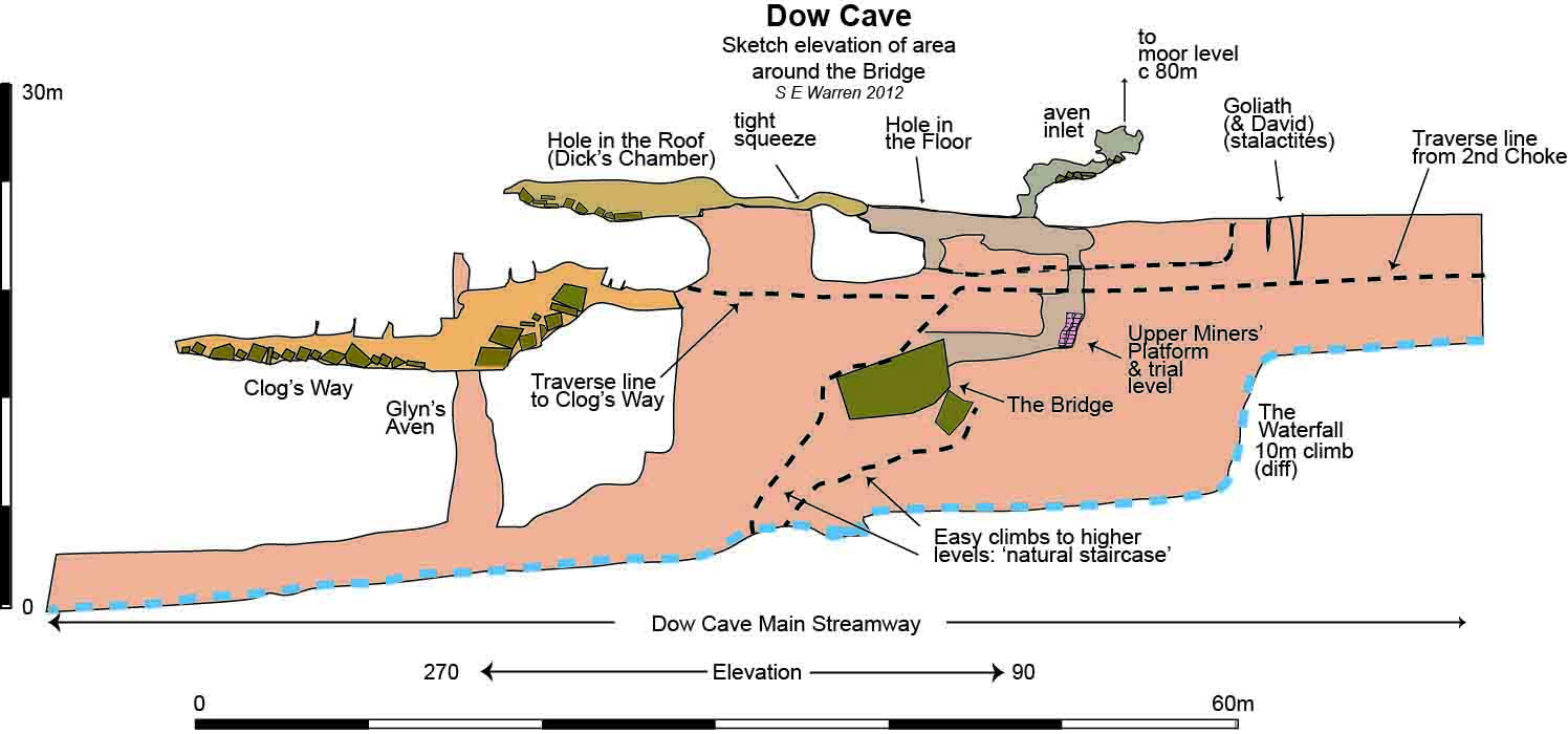 Fig. 26 Dow Cave: Sketch elevation of the area around The Bridge |