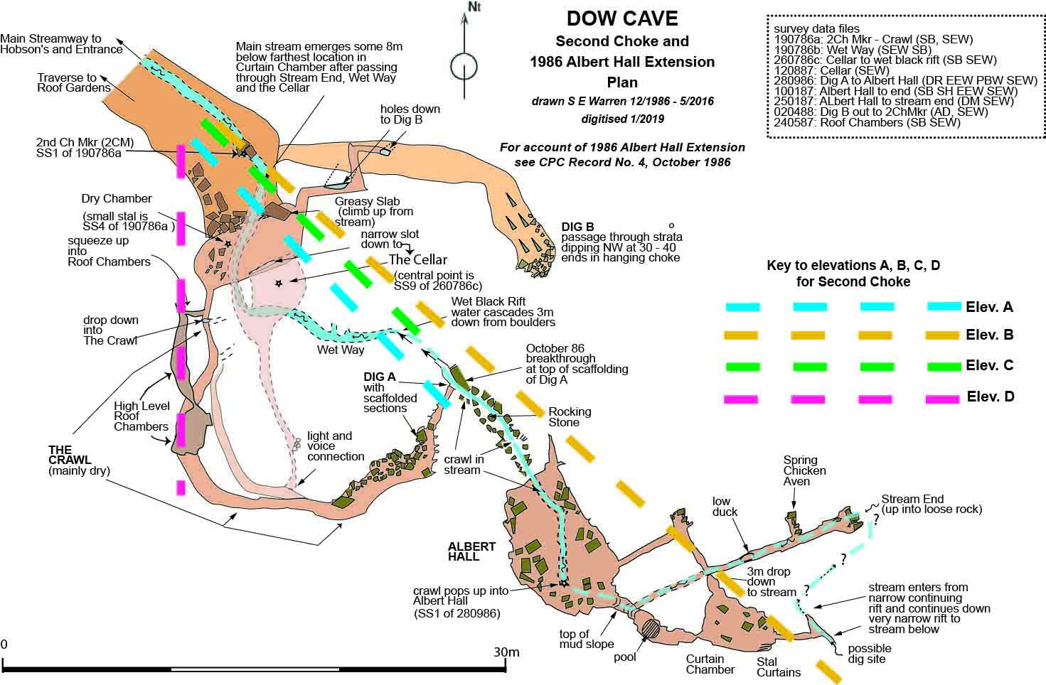 Fig. 27 Dow Cave: Second Choke and 1986 Albert Hall Extension - Plan |