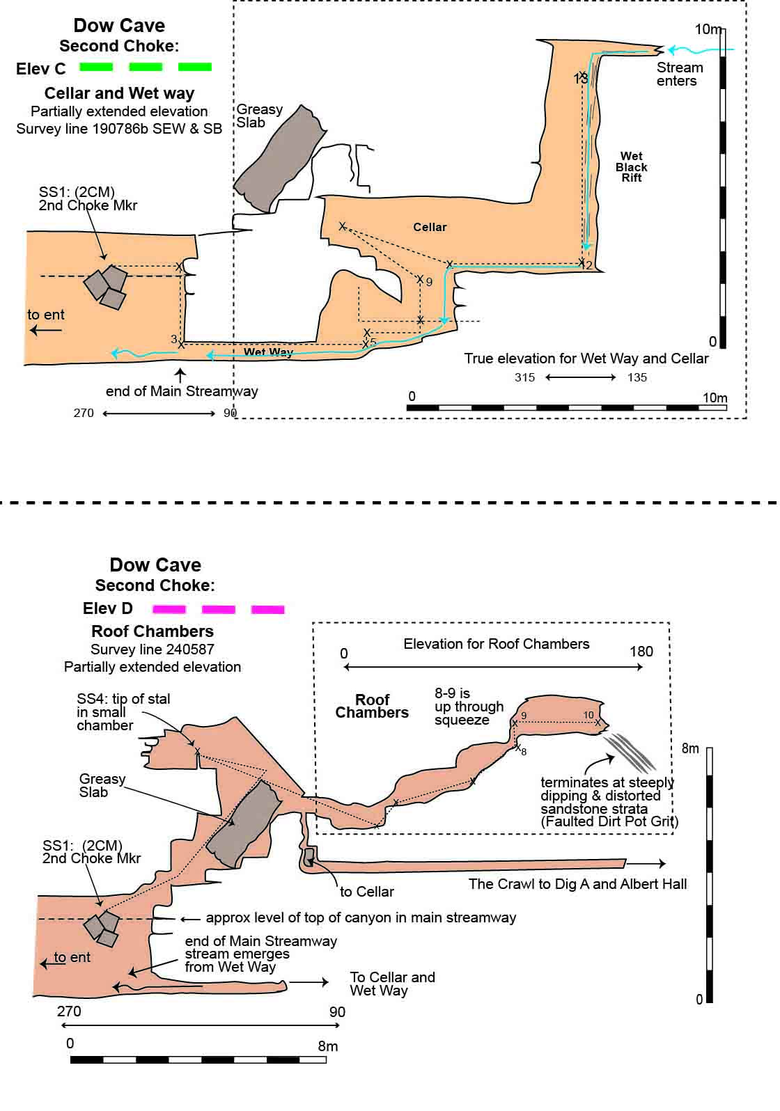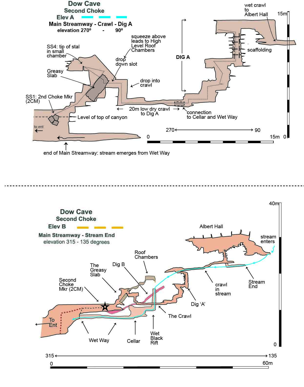 Fig. 28 Dow Cave: Second Choke: elevations A and B |