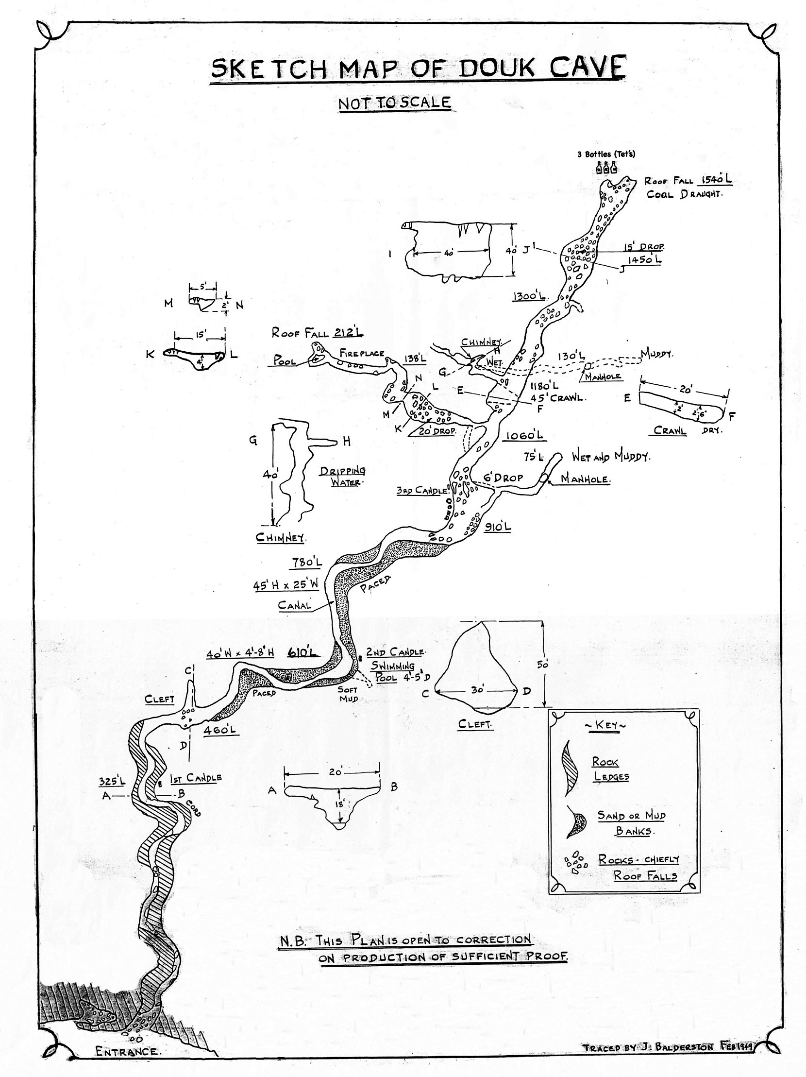 Fig.6: Balderston's 1949 sketch map of Dow Cave |