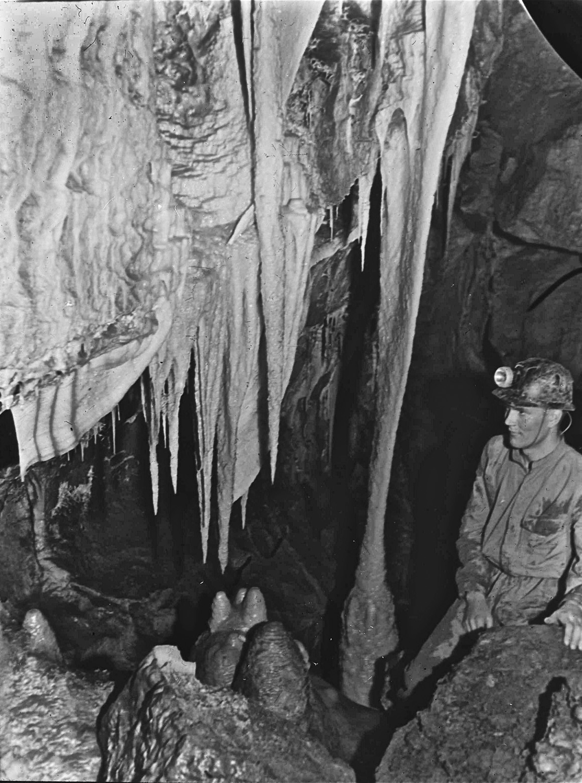 John Hobson at "The Angel" in the Dow Cave extension first discovered by John in June 1953 | ||