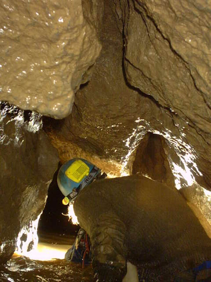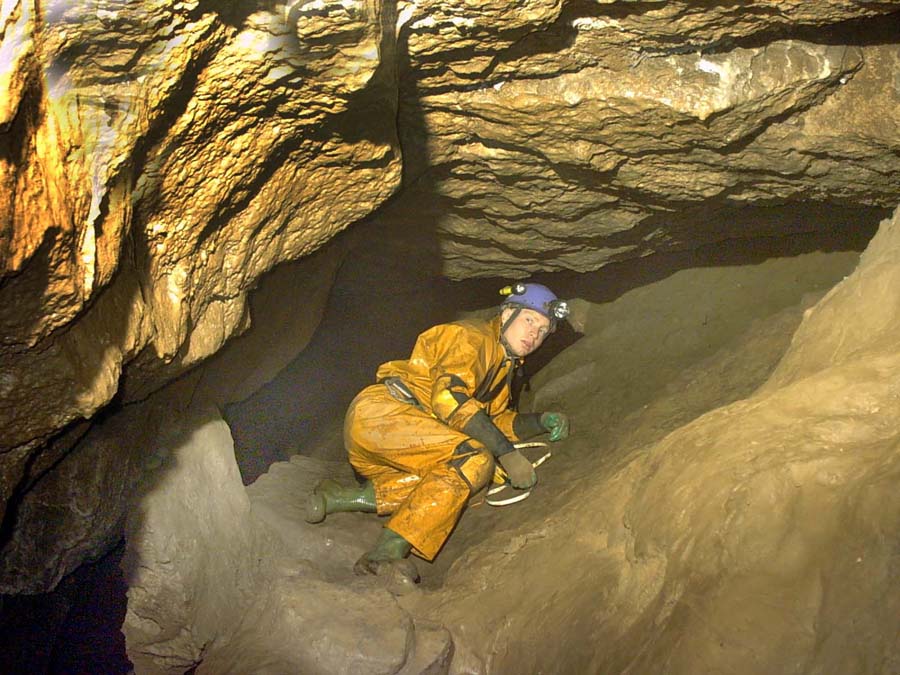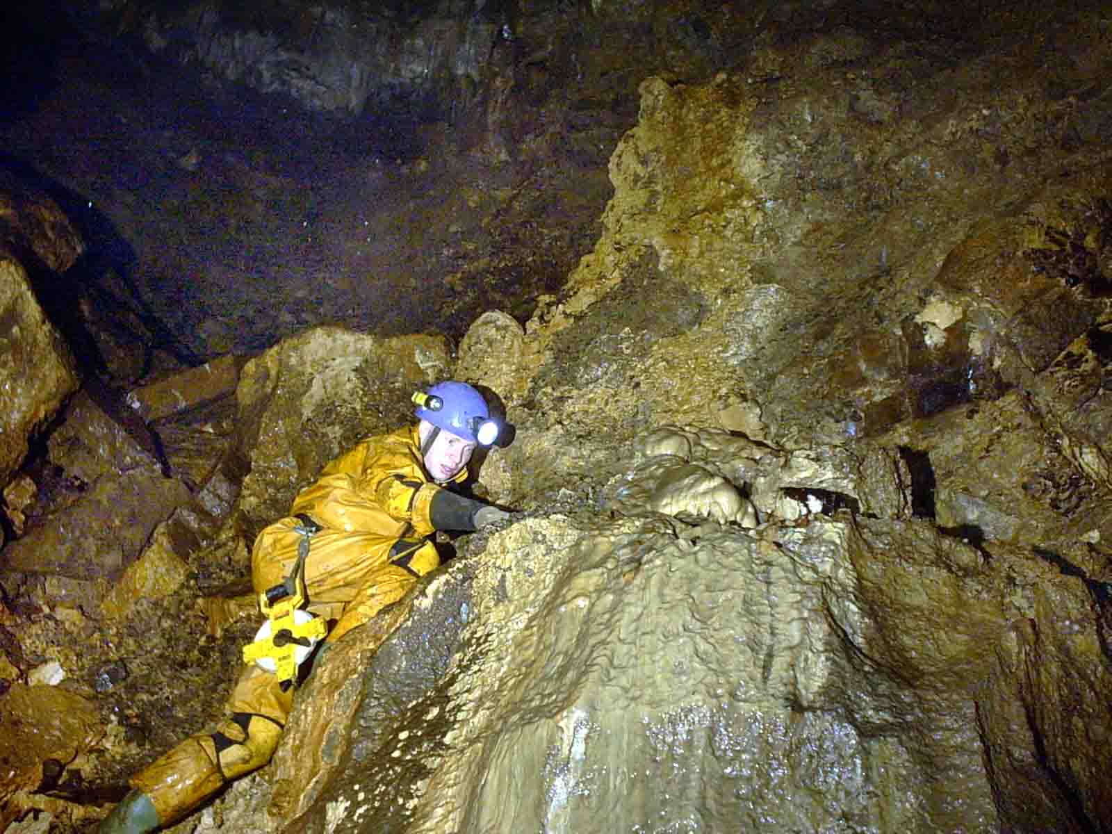 Another dye test showed a connection from a sink in Dowber Gill Wham to the upstream sump of Dowber Gill Passage. However, much of the water emerging at this point is probably drainage from the nearby Providence mineral vein system some 300m to the south of Dowber Gill. In caving terms, Providence Pot is usually taken as the passages down to Stalagmite Corner whereas Dowber Gill Passage usually refers to the streamway right from the upstream sump down to Dow Cave, a distance of some 1.4km. |