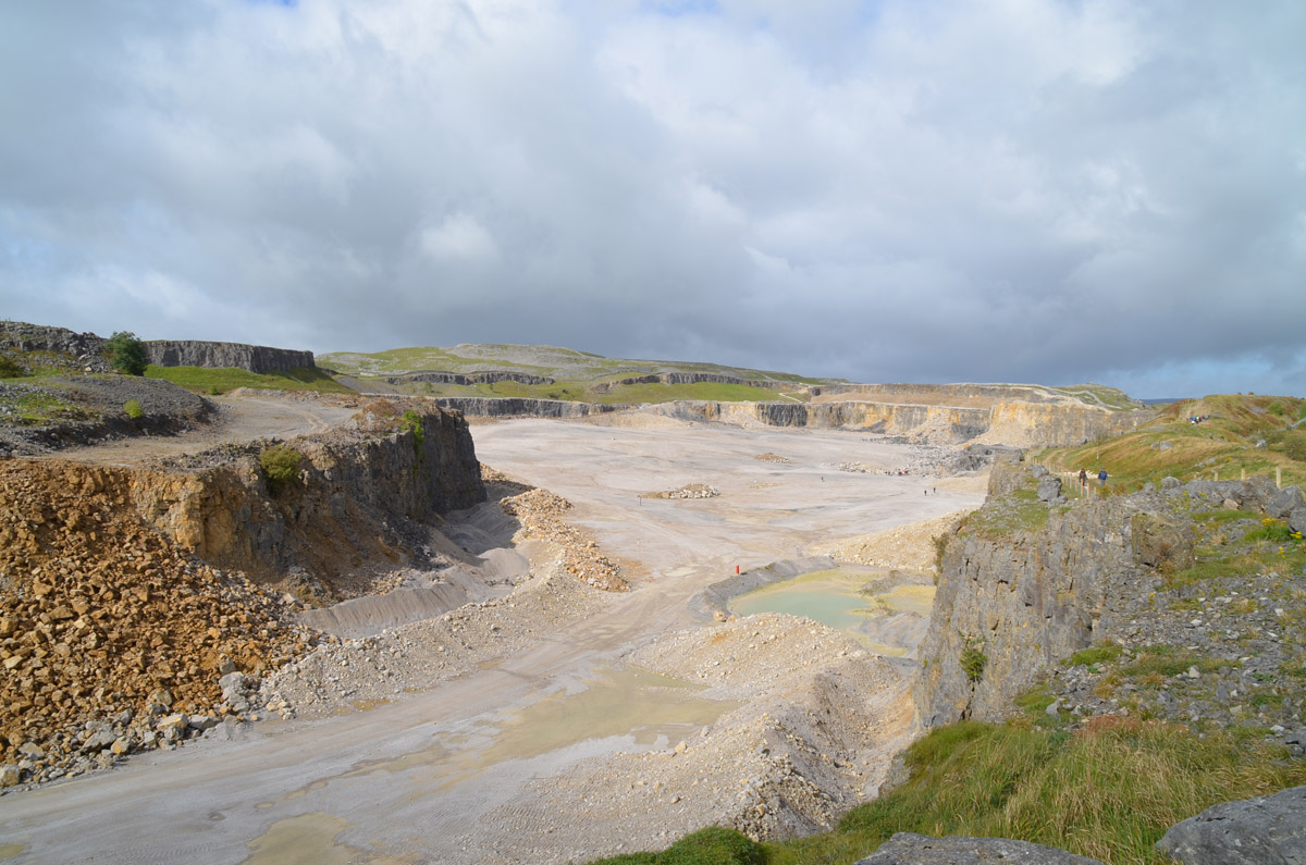 A good place to see dolomite on a grand scale is in Threshfield Quarry recently opened to public access since quarrying operations ceased in 2000. There is a new public footpath through the quarry from Threshfield giving access to the views below. The quarry was originally opened up by local entrepreneur John Delaney in 1902 for the extraction of 'brown limestone', i.e. dolomite, much valued in many branches of industry of the day. |