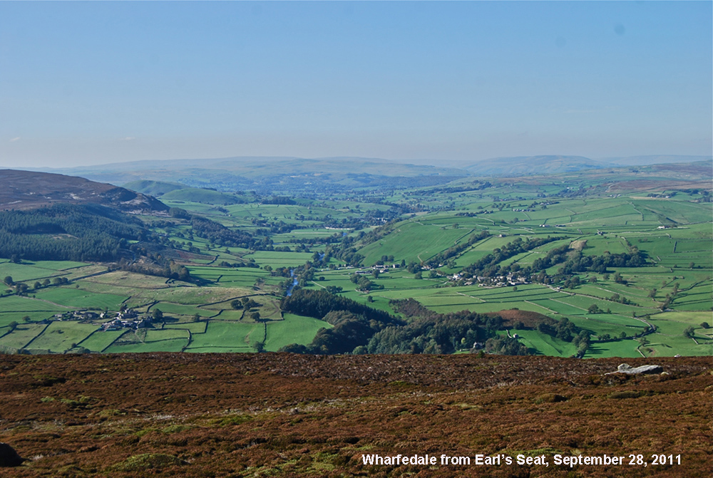 Wharfedale from Earl Seat. The hamlet of Drebley to the left, Appletreewick to the right. |