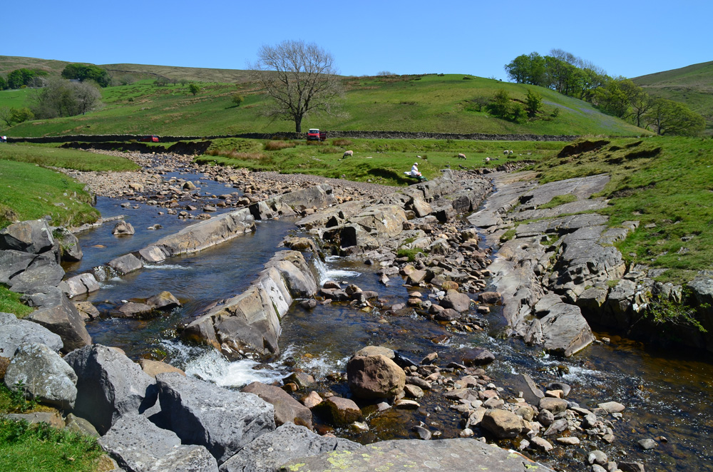 Classical Craven Fault country: the effects of the Dent Fault are well seen in this dipping limestone strata at Blind Beck Bridge, Barbondale. May 25, 2012 |